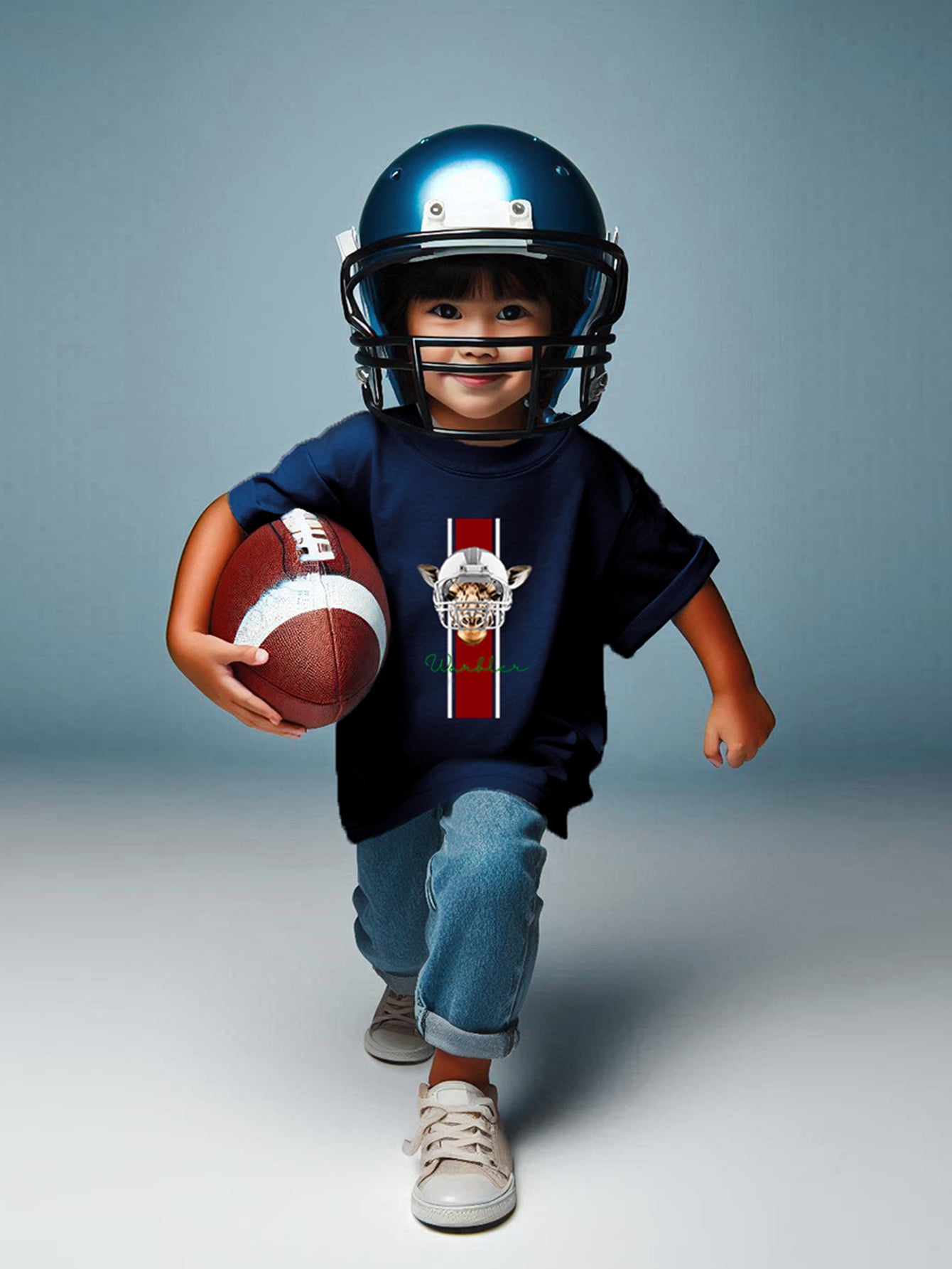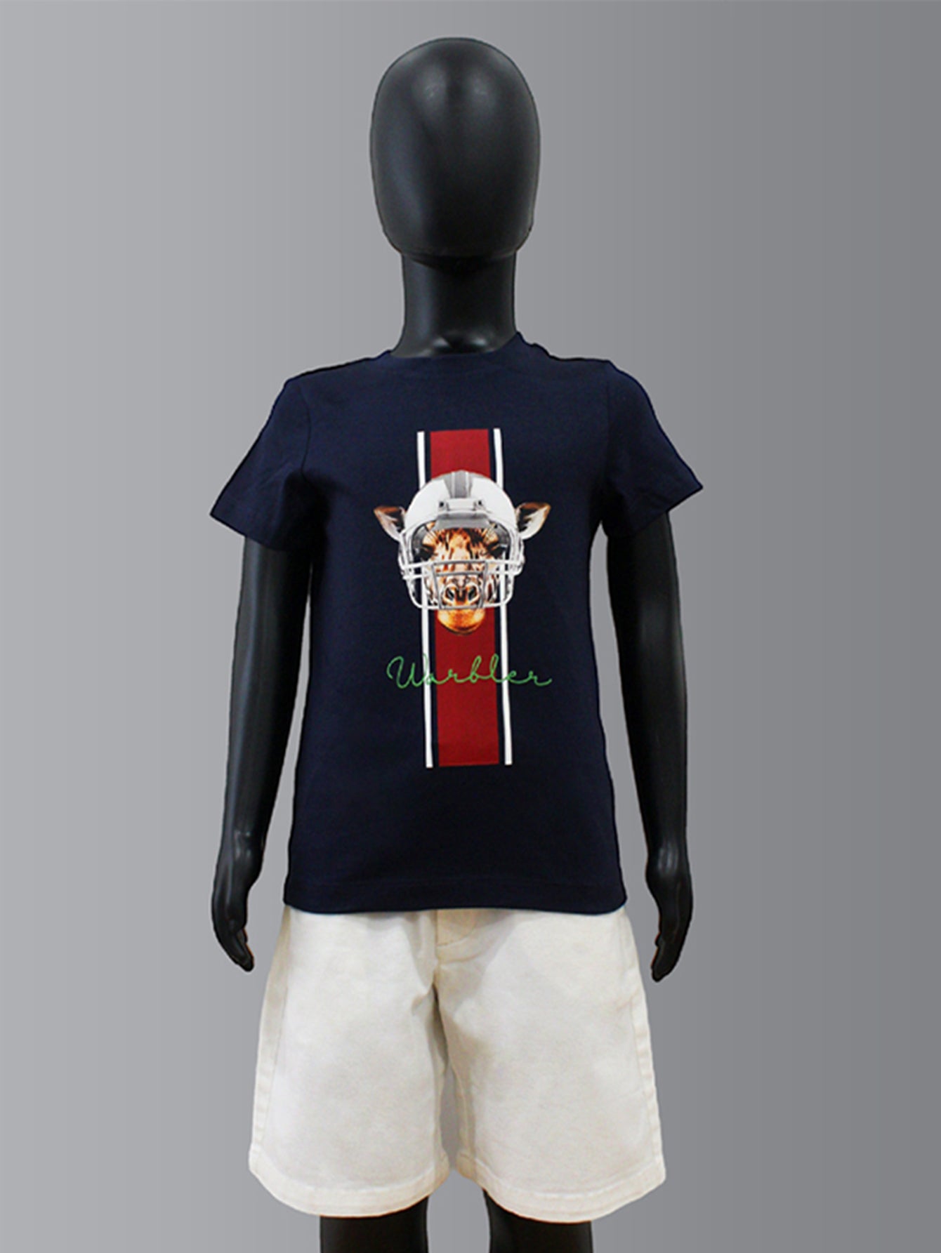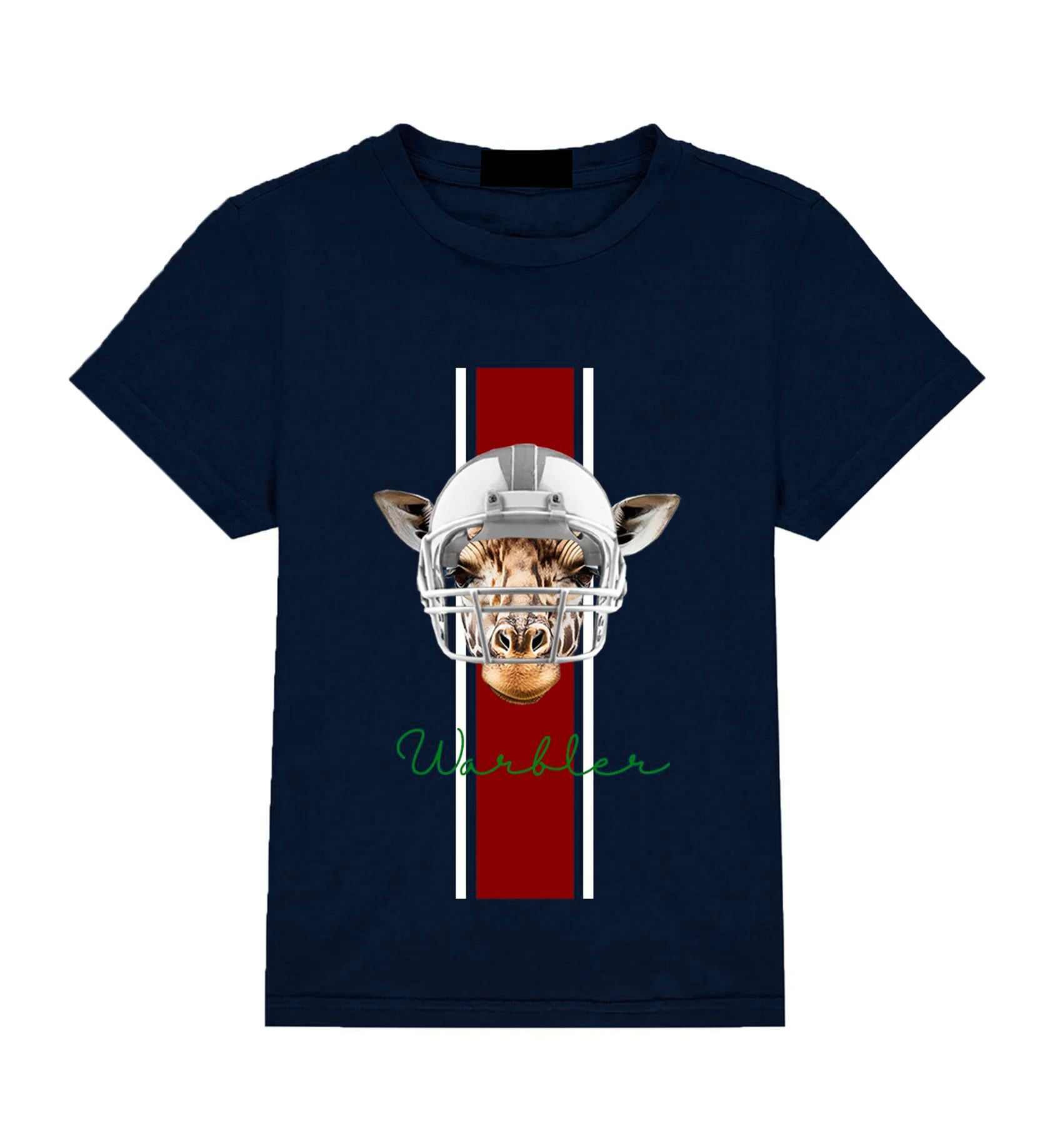 The Athletic Giraffe t-shirt features a unique design of a giraffe wearing a helmet, giving a sporty and edgy feel. Perfect for those looking for a cool and clean look.